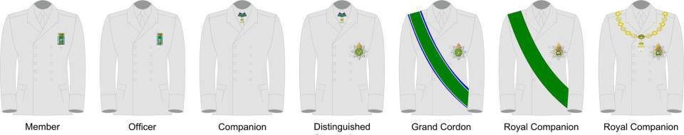 No specific nobility titles are awarded to members of the Order but those belonging in the senior grades of Distinguished Companion and Grand Cordon are permitted to use honorifics within the Order. These are “The Honourable” and “His/Her Excellency” respectively.